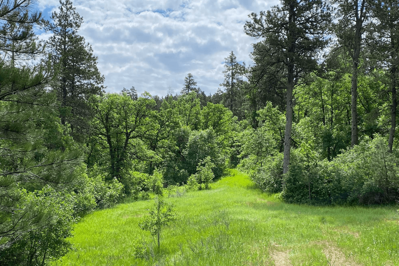 Dugout Gulch is a well-marked botanical trail near Beulah, Wyoming, and a must-visit hike for wildflower viewing in the spring and summer. The first two miles follow a peaceful creek through dense forest, creating a lush, rainforest-like feel. As the trail transitions into a loop, it opens into classic Black Hills pine forest with gently rolling single-track terrain. Popular with both hikers and mountain bikers, Dugout Gulch offers scenic variety without steep climbs. Cell service is limited along most of the trail, so plan accordingly. For a detailed trail guide, read our full blog on Dugout Gulch.