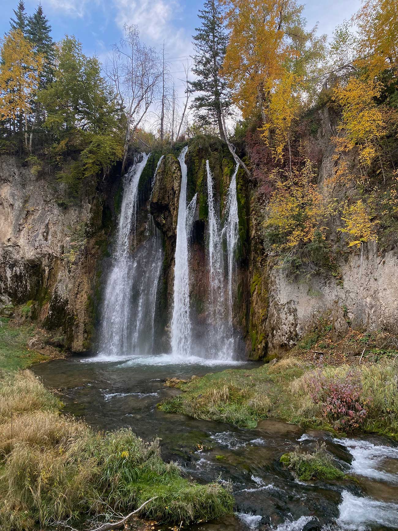 Spearfish Falls Trail is a short, scenic hike located in Spearfish Canyon, South Dakota, and is one of the most popular waterfall hikes in the northern Black Hills. The trail begins near Latchstring Restaurant and descends gradually through forested terrain with a series of switchbacks and multiple creek crossings. Along the way, hikers are treated to views of towering limestone cliffs and lush canyon scenery. Benches near the base of the trail provide a perfect place to rest and enjoy the impressive waterfall as it cascades over the canyon walls. Suitable for most ages and skill levels, Spearfish Falls Trail is a must-do hike for anyone exploring Spearfish Canyon.
