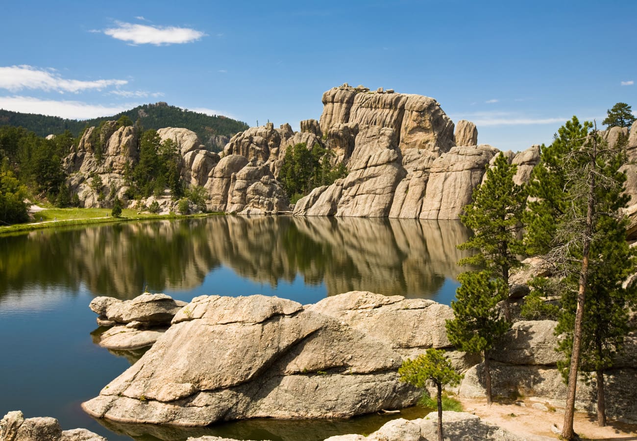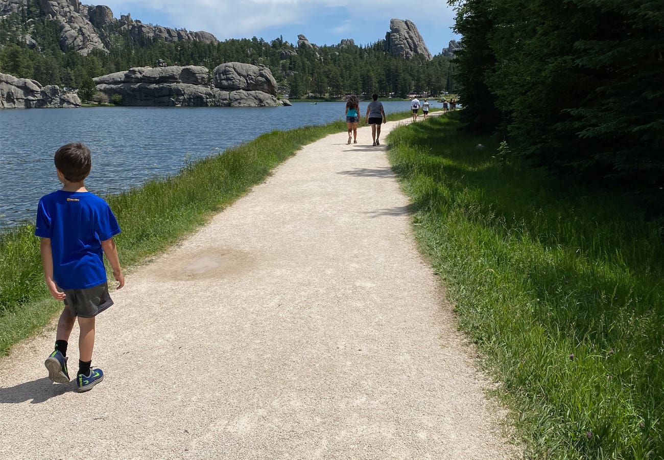 The Sylvan Lake Shore Trail is one of the easiest and most popular hiking trails in Custer State Park. This scenic loop follows the shoreline of Sylvan Lake along a mostly smooth dirt path, offering stunning views of the lake and its iconic granite spires. While generally accessible, a few sections may be challenging for strollers. With minimal elevation change and unforgettable scenery, the Sylvan Lake Shore Trail is perfect for families, casual hikers, and anyone looking to enjoy classic Black Hills beauty.