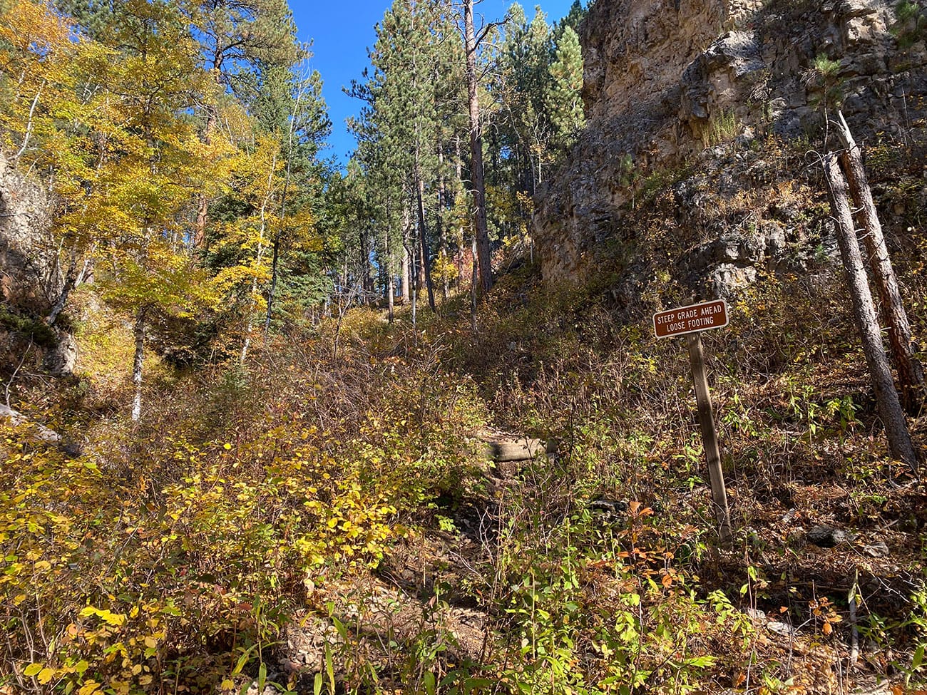 76 Trail in Spearfish Canyon, South Dakota is a short but demanding Black Hills hike with a steep, sustained climb. Don’t let the short distance fool you—this difficult trail gains elevation quickly and will get your heart pumping. Your effort is rewarded at the top with impressive views overlooking the dramatic cliffs and winding corridor of Spearfish Canyon. The 76 Trail offers a challenging ascent and a scenic payoff just minutes from the canyon road.