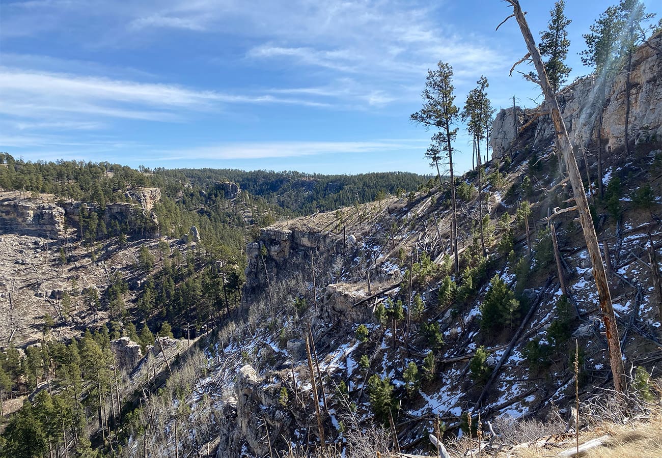 Much of the trail has little to no shade, and once inside the canyon, limited airflow can make hot days feel especially intense. For the best experience, plan this hike on cooler days or start early in the morning. Creek crossings are usually manageable in late summer but may be more difficult during spring runoff. With rugged terrain, dramatic scenery, and a quiet backcountry feel, Hell Canyon Trail offers a true Black Hills adventure near Custer.