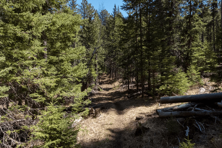 After that, the trail began to gradually run downhill, which made the next two miles a relatively easy walk. The trees were thinner here with lots of open areas for grass to grow. This part of the trail also had the best views looking west at the rolling mountains in the distance. Finally, at about five miles into the hike, the trail began a steeper descent leading down towards Nemo.